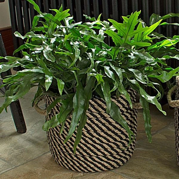 Create a fashion statement in your interiors with our stylish two-toned black and tan rope baskets. Handmade in durable 100% polypropylene, they transform any indoor plant into a main attraction. Constructed using a flat braid pattern in alternating strands of black and light brown, they’re also a smart-looking way to organize smaller household items including toys.