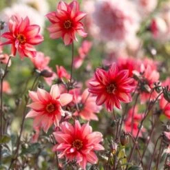 Dahlias are native to Mexico and South America, and hold their display in reserve for mid- to late summer and early fall. The genus offers incredible diversity of color and form and we offer dozens of varieties every year. Dahlias are perennial but not cold hardy – tubers can overwinter in the ground in Zone 8 or warmer; in colder climates tubers can be dug after frost and easily stored indoors over winter. Please note – Dahlias should be planted outside once the danger of frost has passed and soil temperature has reached approximately 60°. We ship tubers beginning in late March and they can be stored until planting time if necessary. For more information on growing Dahlias, click on the Growing Guide tab on this page.