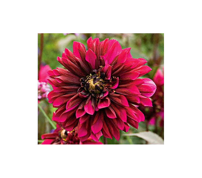 Bright magenta purple adds zip to late summer borders, providing a sharp contrast or a smooth blend with nearby hues. We like to pair the 4–6″ flowers of Dahlia ‘Purple Haze’ with the pinkish purple blooms of Verbena bonariensis. Anemone form.