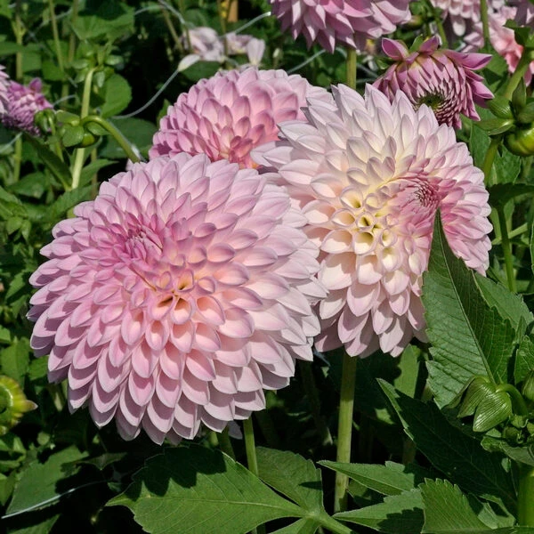 Kissed subtle shades of cream and blush pink, the muted palette of Dahlia ‘Sefton Silvertop’ combines beautifully with a variety of other hues in gardens and bouquets. Sometimes the petals are delicately outlined with pale rose, giving blossoms an alluring effect. The 5″ flowers are held aloft on long stems. Formal Decorative form.