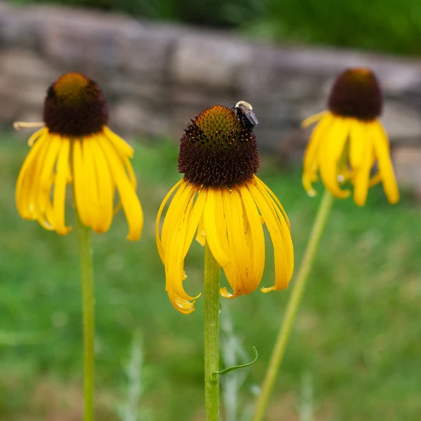 The large, fragrant, 6″, Daisy-like flowers of Echinacea paradoxa have golden yellow ray flowers that encircle a chocolate-colored cone. Pollinators adore these blooms, and small birds including goldfinches will feast on the seed heads in autumn. The ‘paradox’ referred to by the name is rooted in this plant’s origins: It’s a species of purple Coneflower (Echinacea purpurea) that blossoms yellow. Native to limestone glades in the Ozarks, it is habituated to areas where water can be scarce. It’s a cheerful choice for meadow gardens, mixed sunny borders, and waterwise plantings.