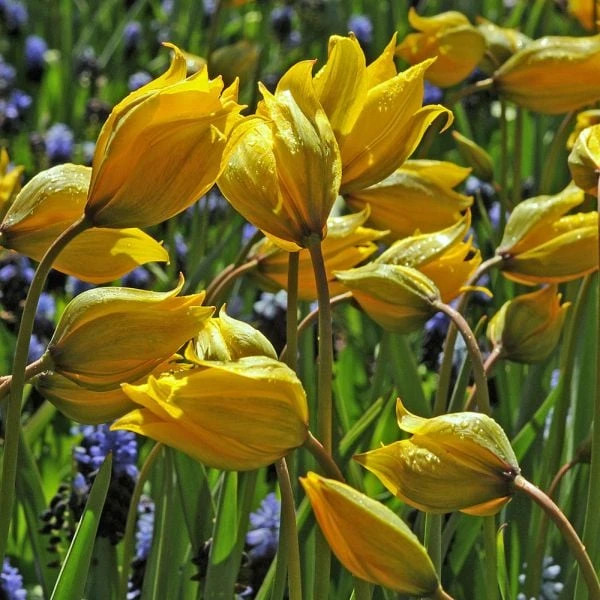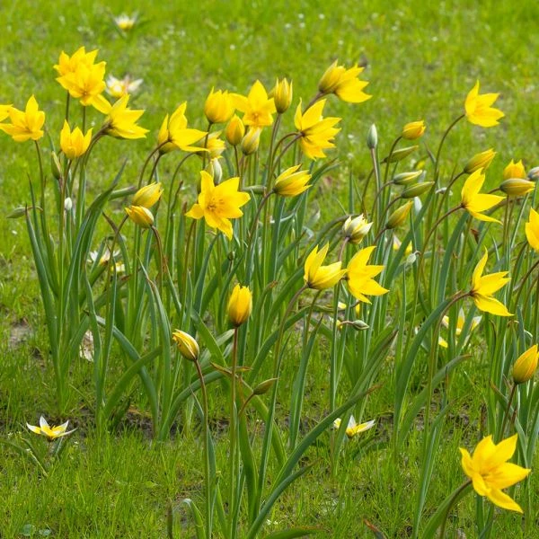 Naturalized in forests and meadows across Europe, this charming heirloom is known as the Woodland or Florentine Tulip. Nodding buds on dainty stems open to graceful, golden blossoms with a fragrance reminiscent of Violets. In 1916, the famous American garden writer Louise Beebe Wilder observed “a sweet thing, with the shy grace common to most wild things.” A great performer in the South, Tulipa sylvestris has naturalized beautifully at Thomas Jefferson’s Monticello. Place the bulbs at the foot of a south-facing wall where they can settle in, spreading by underground stolons and forming colonies in the hot, well-drained soil they like. Midseason.