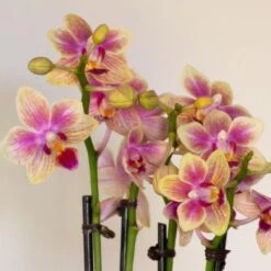 Elegant and beautiful, the arching, pure white sprays of Moth Orchids (Phalaenopsis) are graceful and long lasting. Our White Moth Orchid arrives with 2 budded spikes that will open in sequence and last for weeks. Even beginners can grow Moth Orchids in bright, indirect light and temperatures of 70-80°F during the day, 60-65°F at night. Shipped in a 5½ wide x 7″ tall ceramic cachepot.